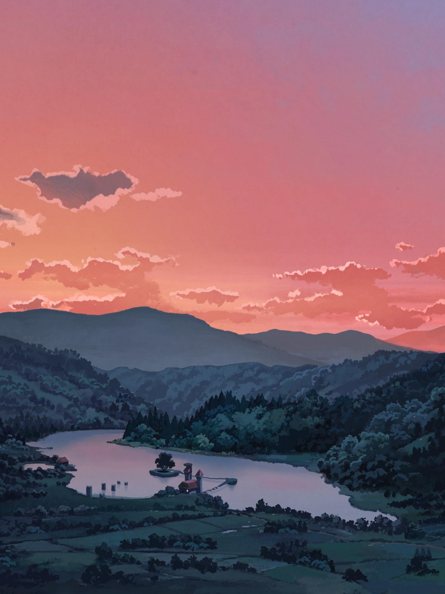 Обои: пейзаж, долина, рисунок - 1536x2048