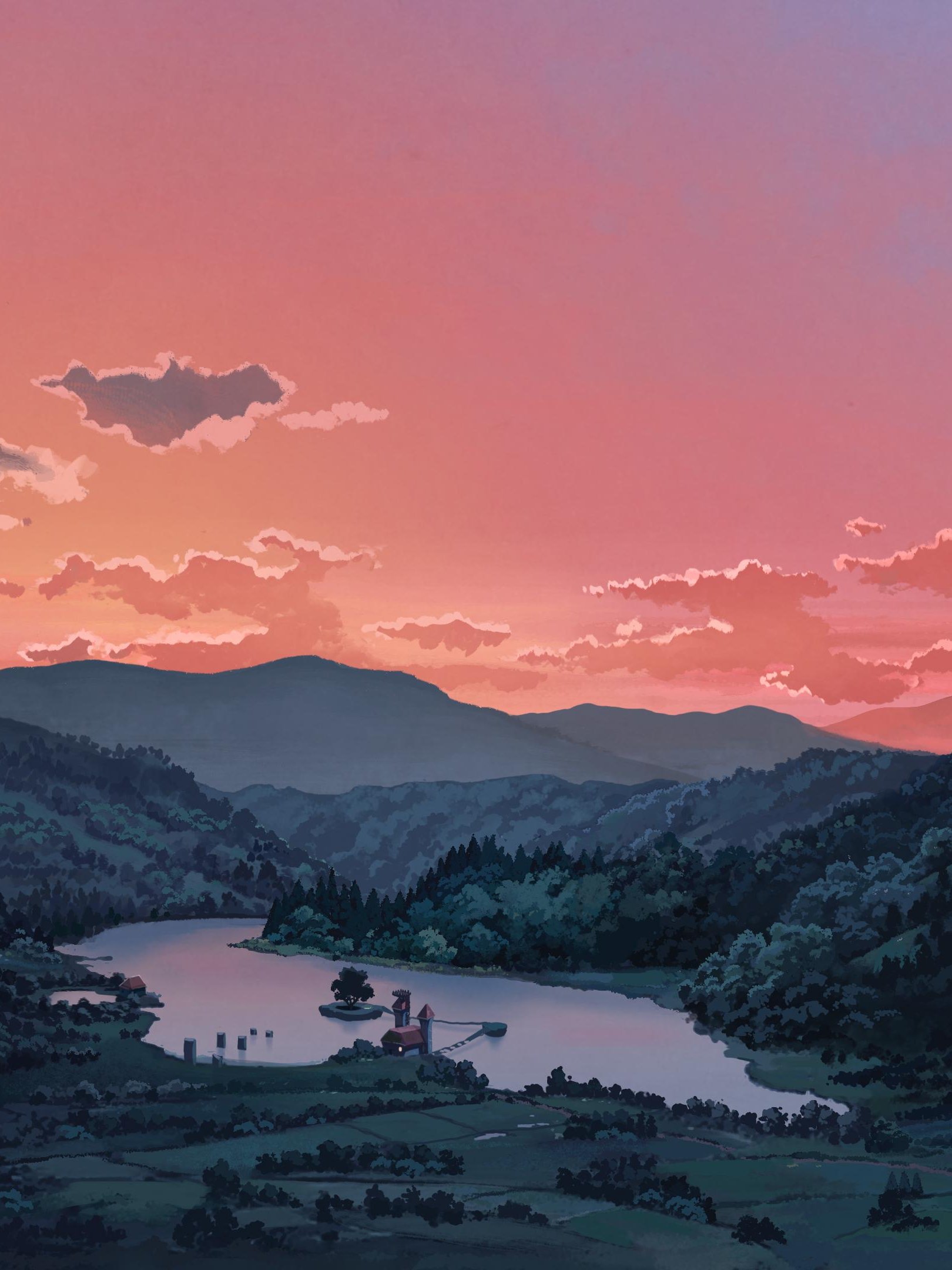 Обои: пейзаж, долина, рисунок - 1620x2160