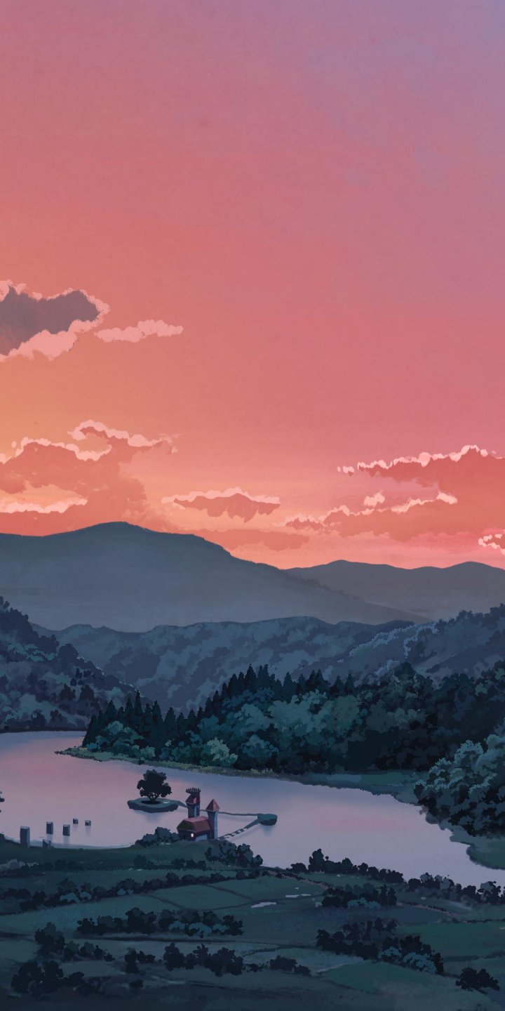 Обои: пейзаж, долина, рисунок - 720x1440