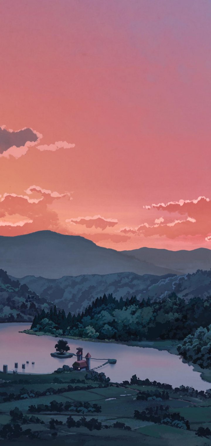 Обои: пейзаж, долина, рисунок - 720x1520