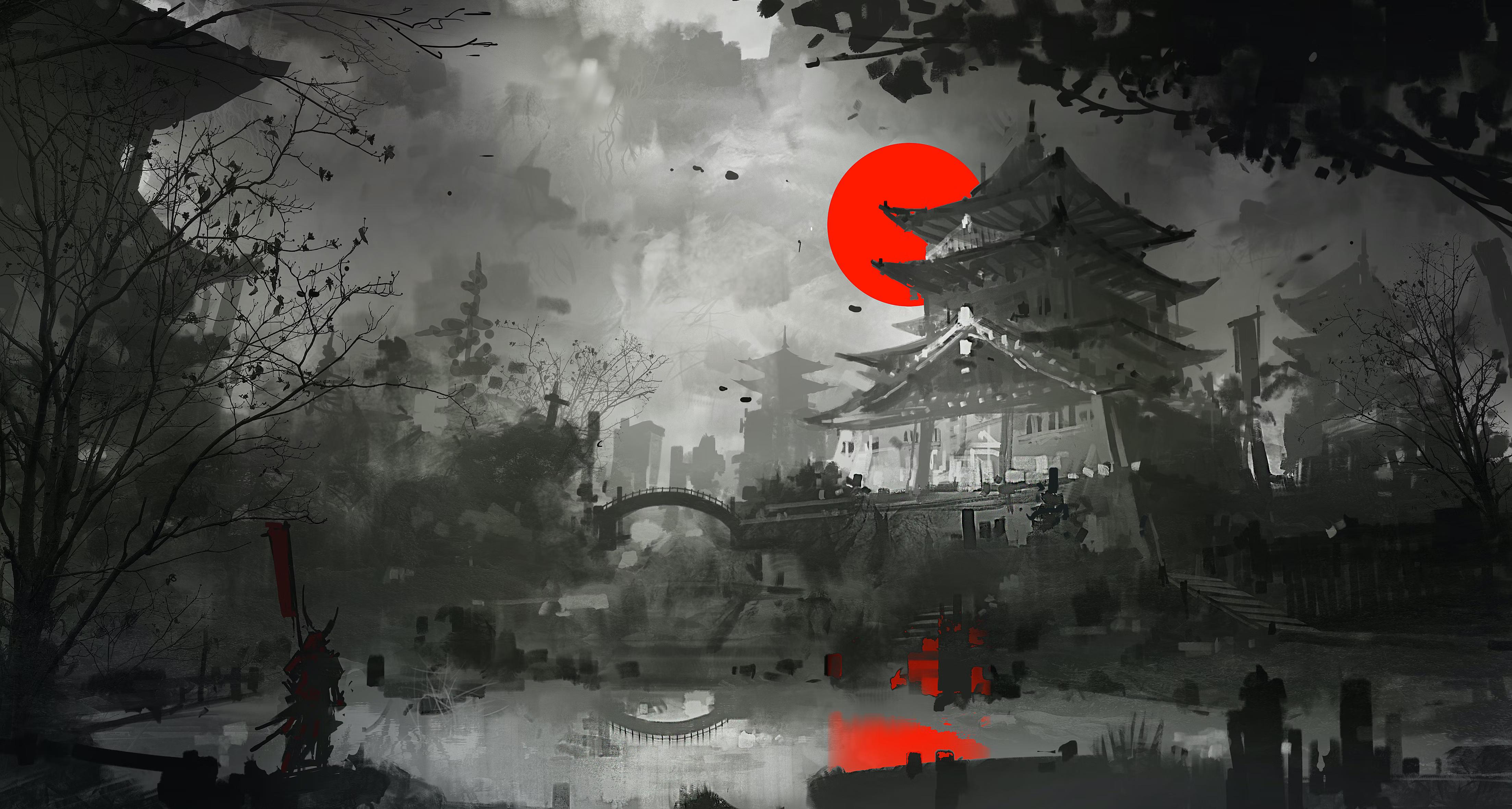 Обои: рисунок, Япония, серый, темный - 4412x2362