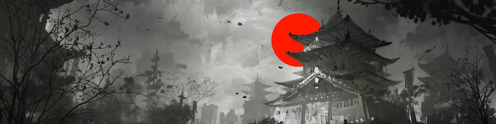 Обои: рисунок, Япония, серый, темный - 1590x400
