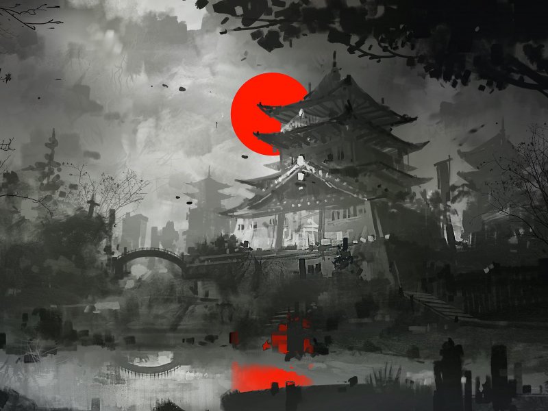 Обои: рисунок, Япония, серый, темный - 800x600