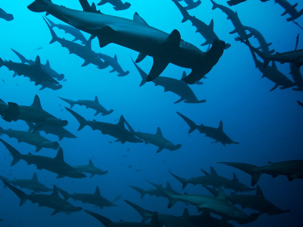 Обои: акула-молот, под водой, синий - 1024x768