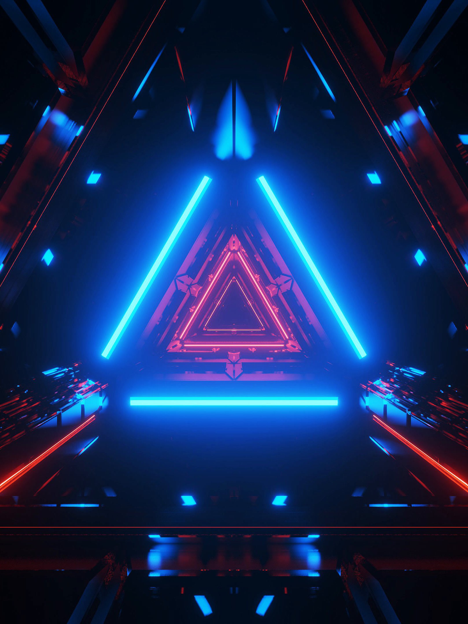 Обои: неон, симметрия, абстракция, треугольник - 1620x2160
