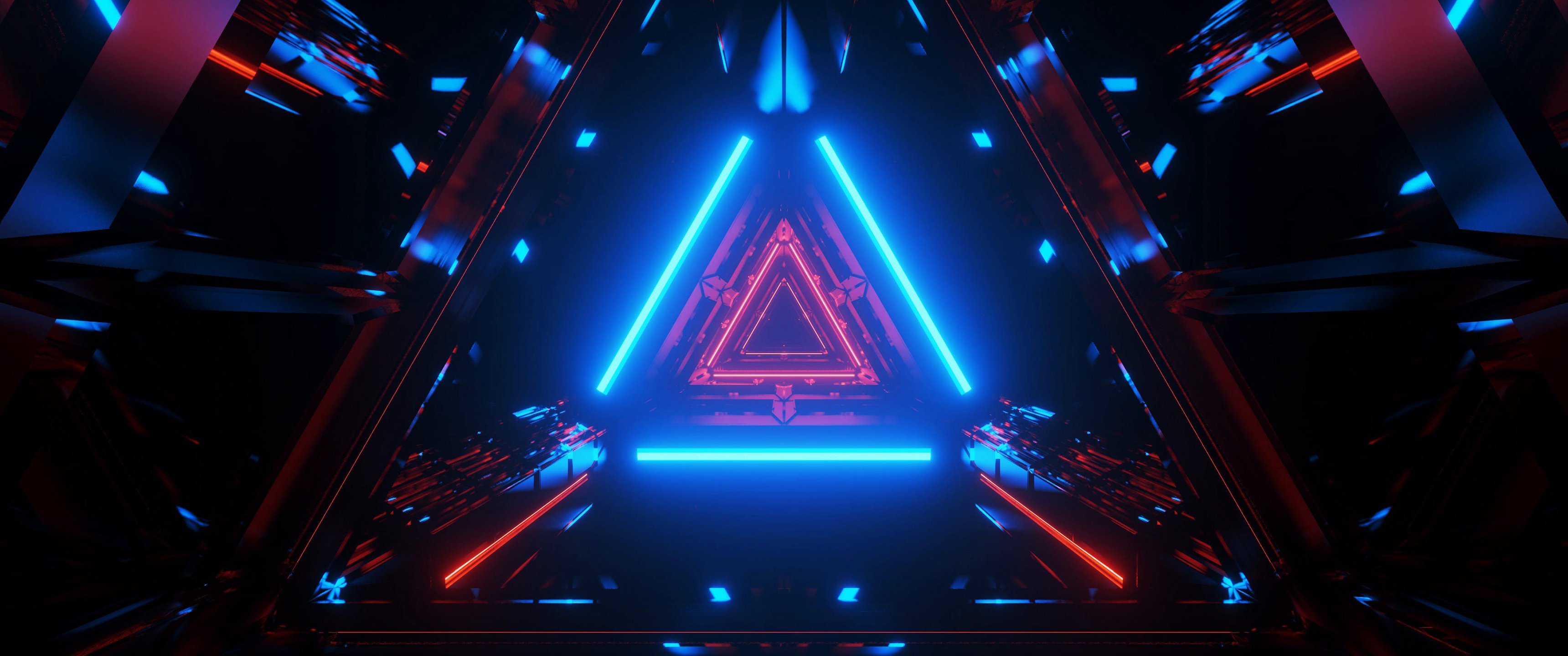 Обои: неон, симметрия, абстракция, треугольник - 3440x1440