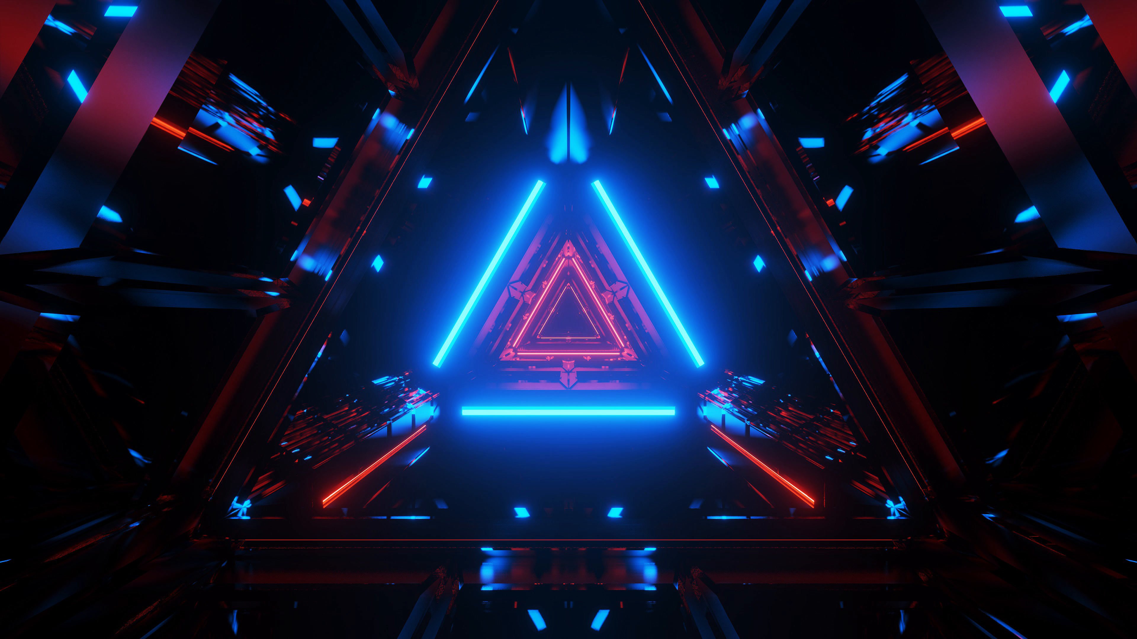 Обои: неон, симметрия, абстракция, треугольник - 3840x2160