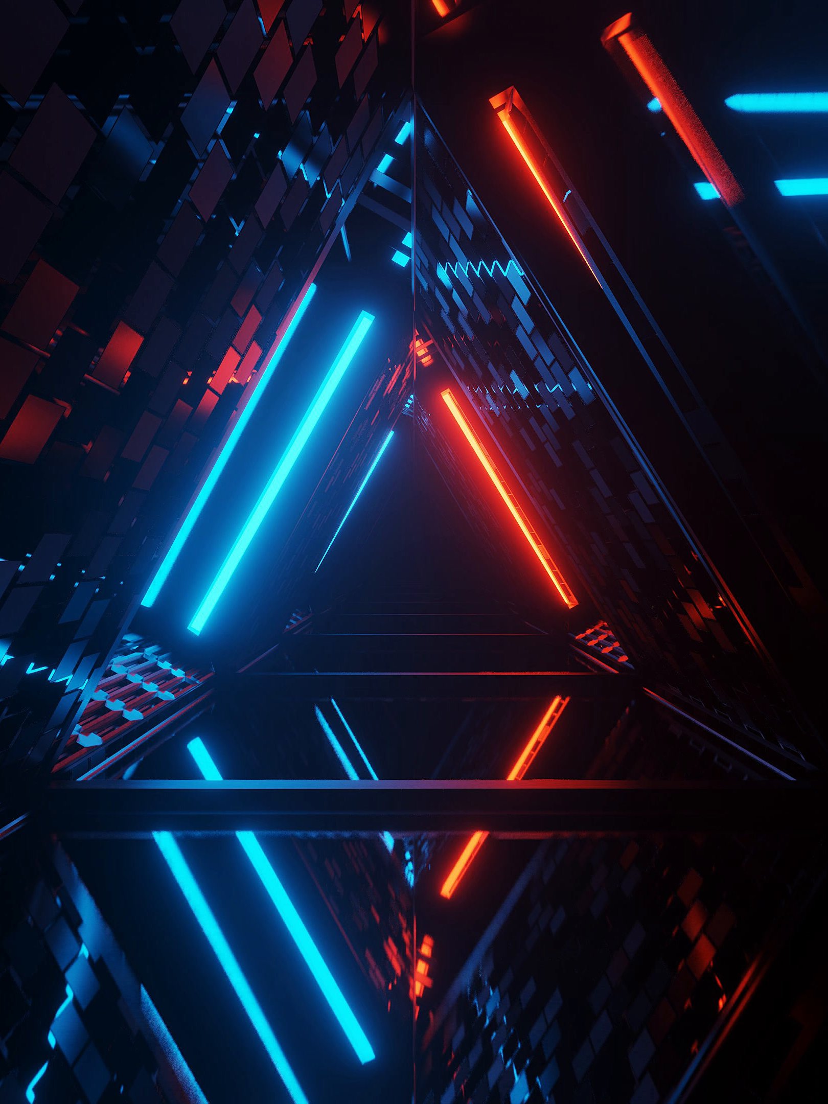 Обои: неон, симметрия, абстракция, треугольник - 1620x2160