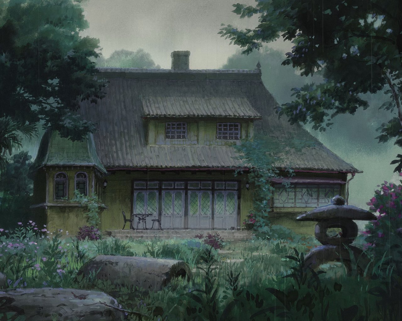 Обои: рисунок, дом в лесу, темный, мрачный - 1280x1024