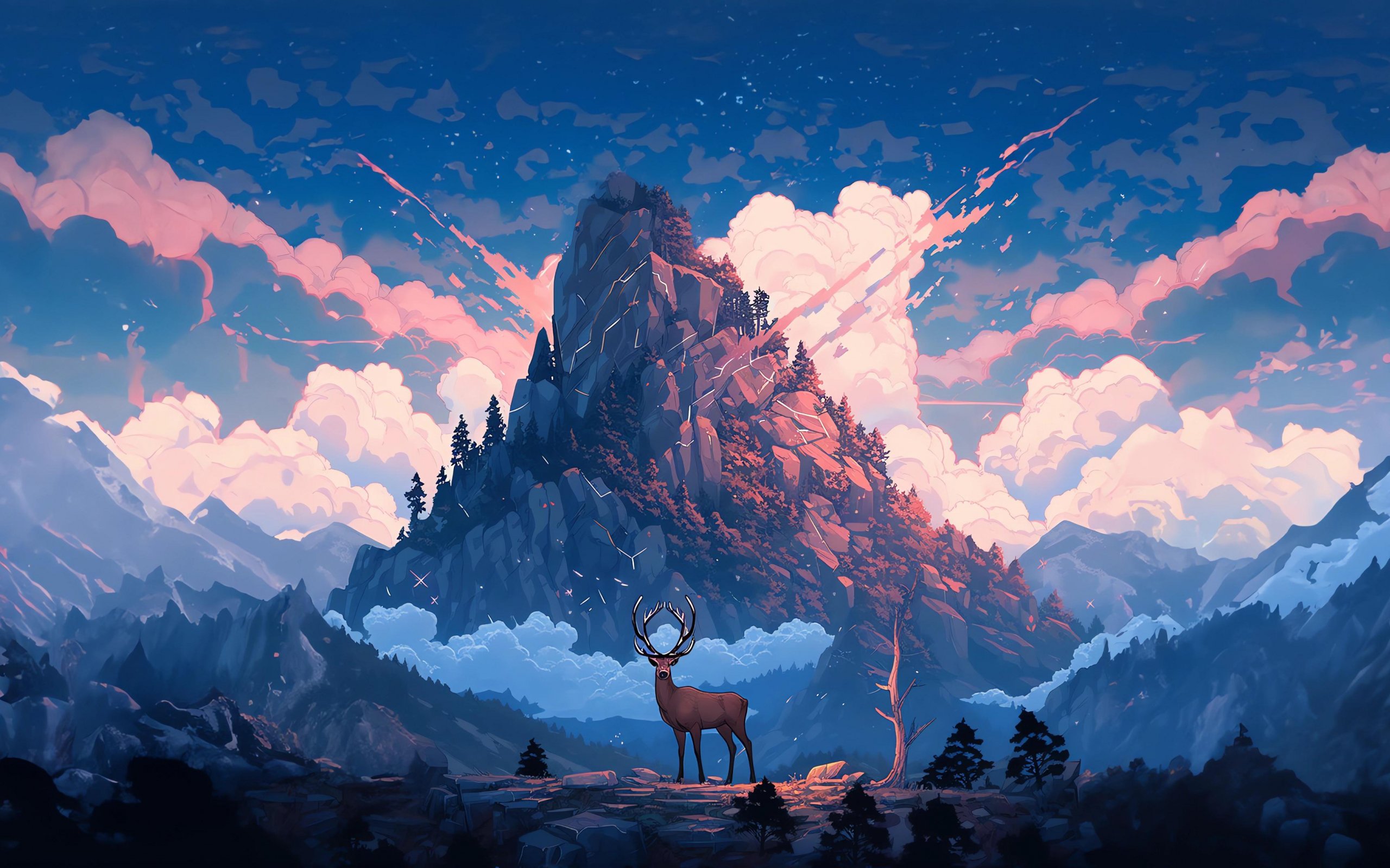 Обои: олень, гора, пейзаж - 2560x1600