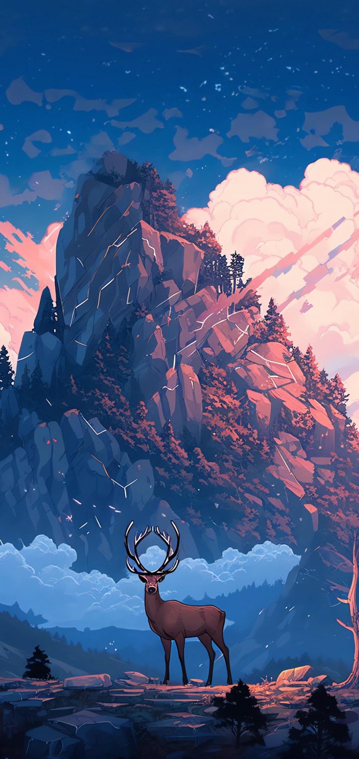 Обои: олень, гора, пейзаж - 720x1520