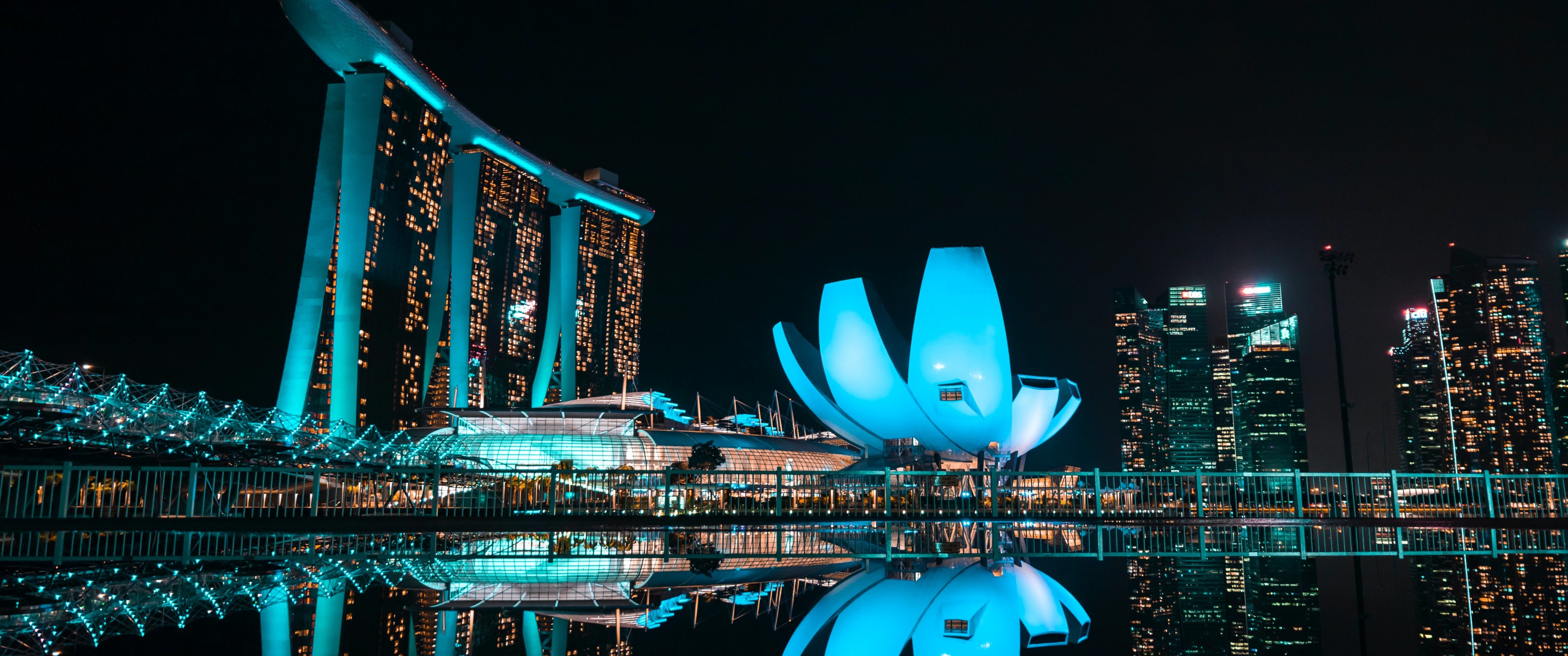 Обои: Marina Bay Sands, Сингапур, ночь - 3440x1440