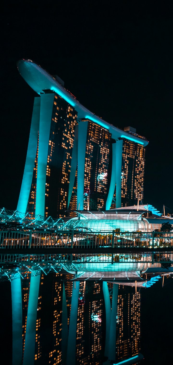 Обои: Marina Bay Sands, Сингапур, ночь - 720x1520