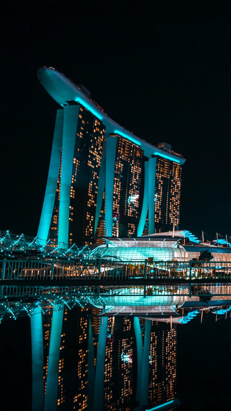 Обои: Marina Bay Sands, Сингапур, ночь - 750x1334