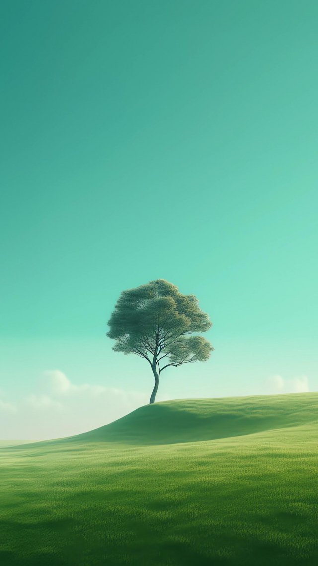 Обои: одинокое дерево, пейзаж, зеленый - 640x1136