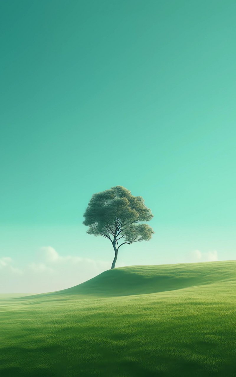 Обои: одинокое дерево, пейзаж, зеленый - 800x1280
