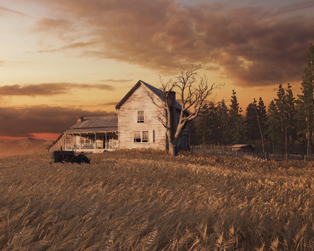 Обои: The Last of Us, ферма, закат, поле - 1280x1024