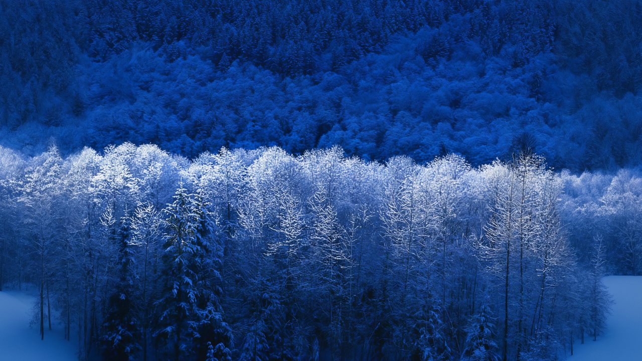 Обои: Windows XP обои, зимний лес, синий - 1280x720