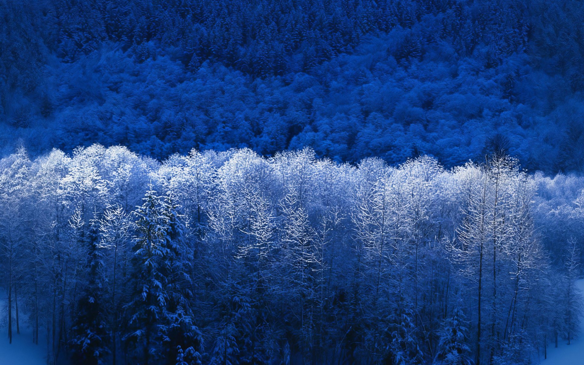 Обои: Windows XP обои, зимний лес, синий - 1920x1200