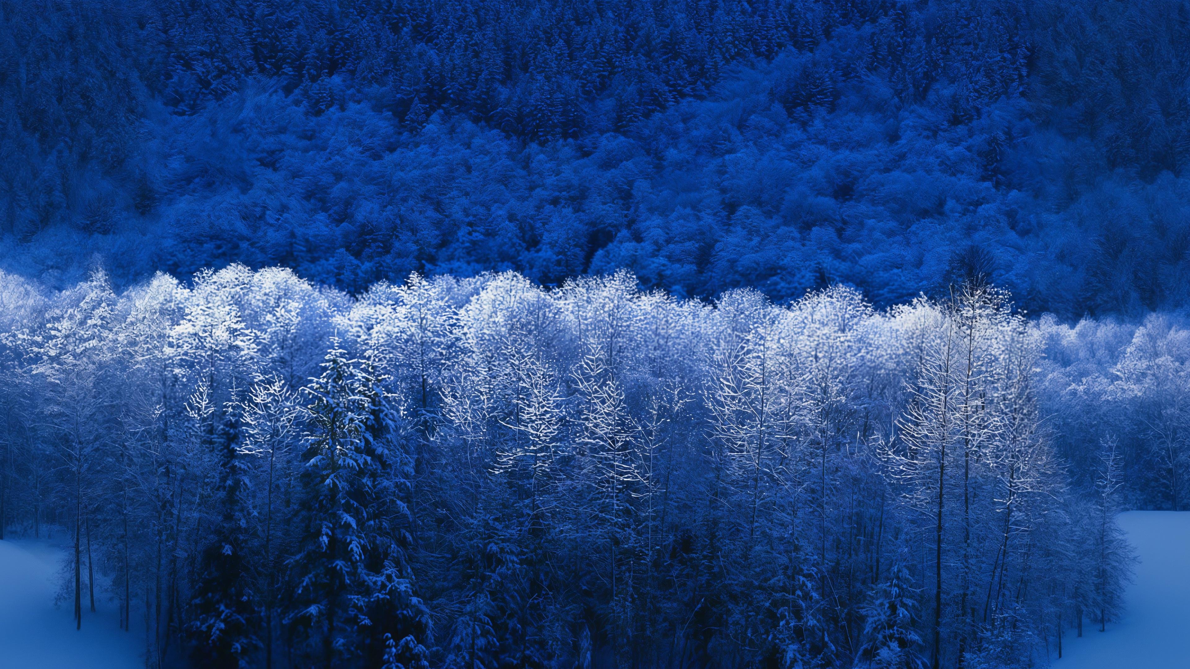 Обои: Windows XP обои, зимний лес, синий - 3840x2160