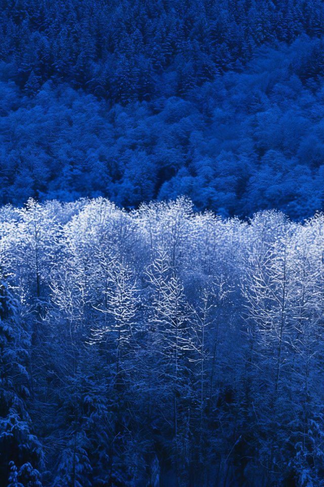 Обои: Windows XP обои, зимний лес, синий - 640x960