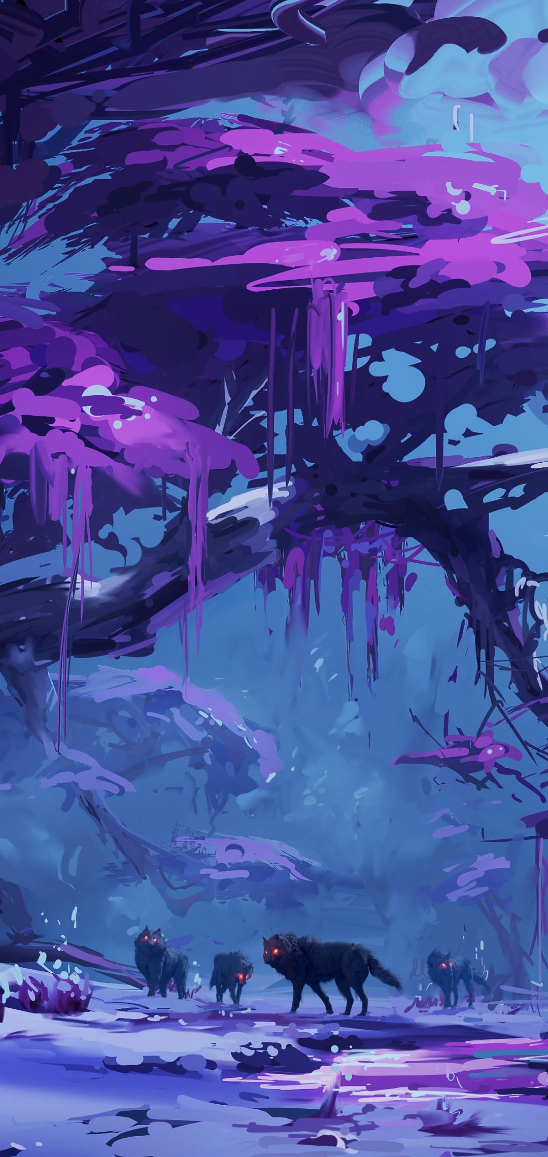 Обои: фиолетовый, лес, фантастика - 1080x2280