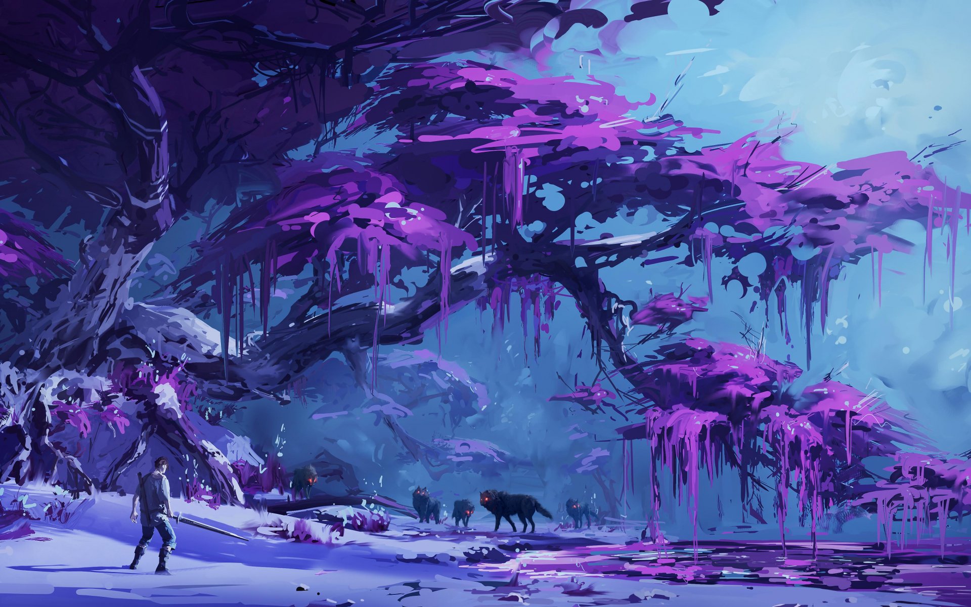 Обои: фиолетовый, лес, фантастика - 1920x1200