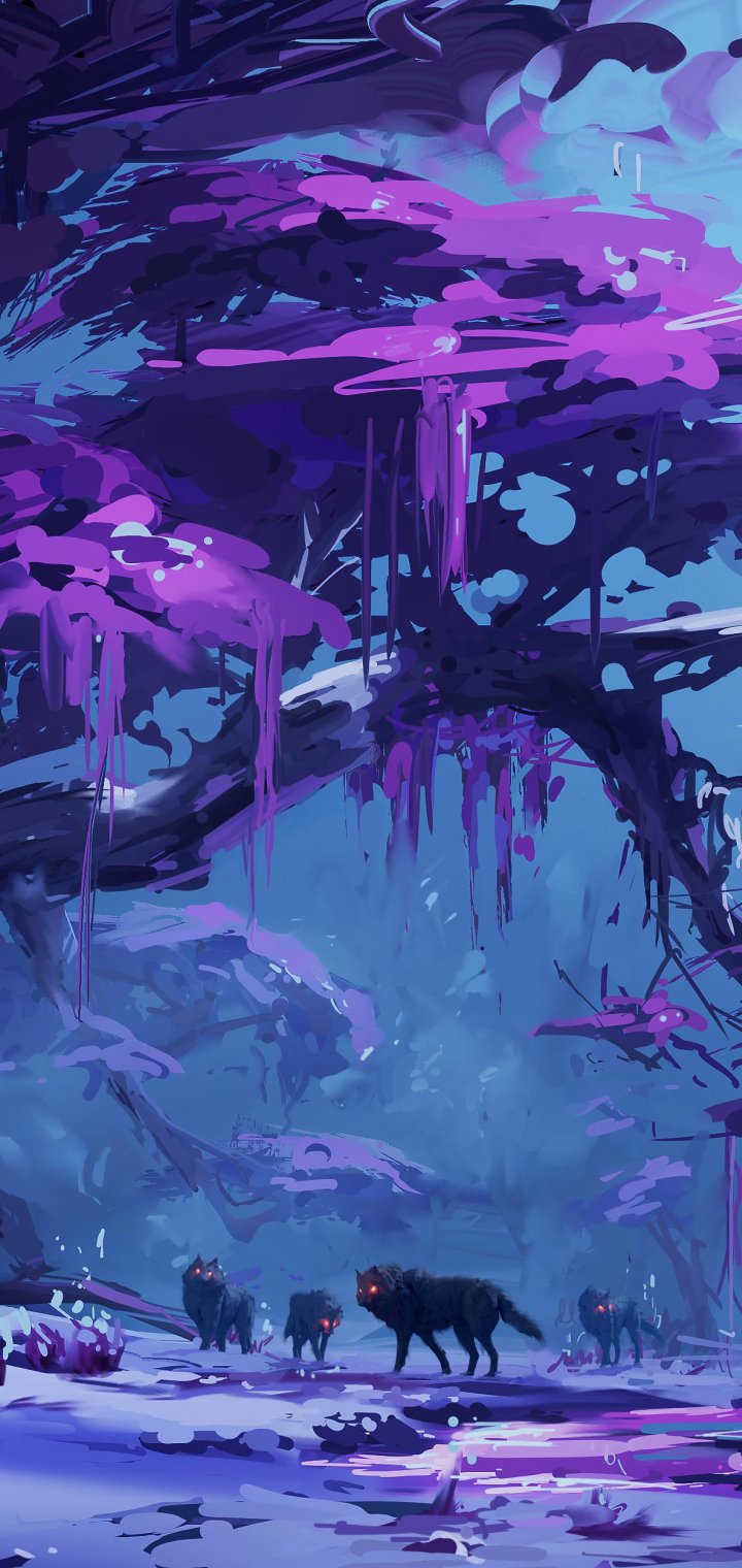 Обои: фиолетовый, лес, фантастика - 720x1520