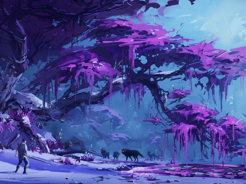 Обои: фиолетовый, лес, фантастика - 800x600