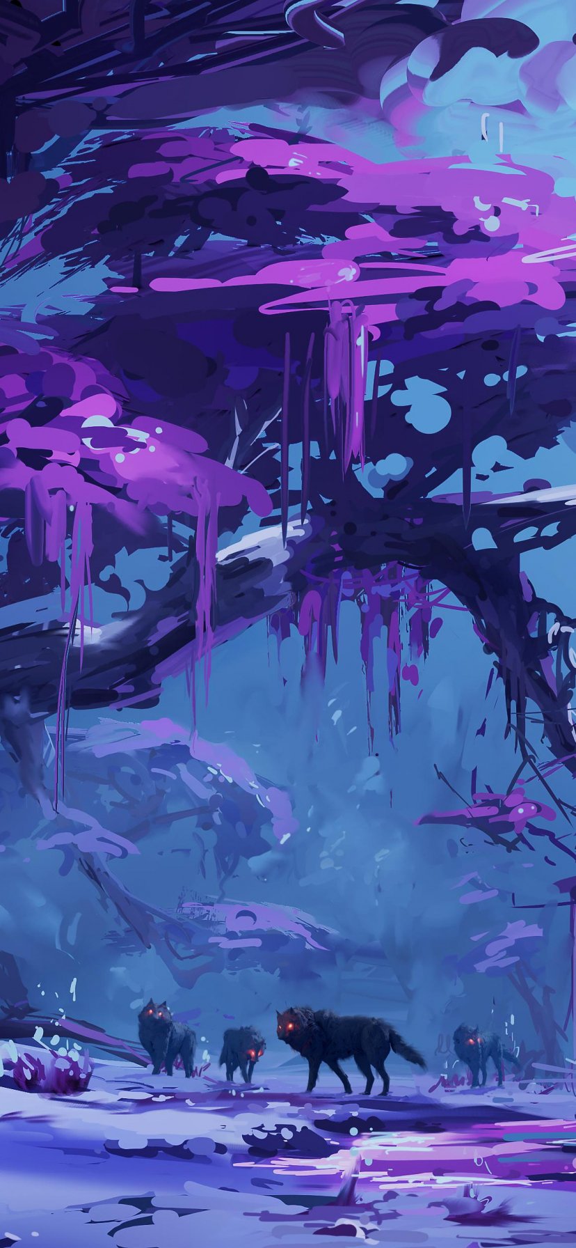Обои: фиолетовый, лес, фантастика - 828x1792