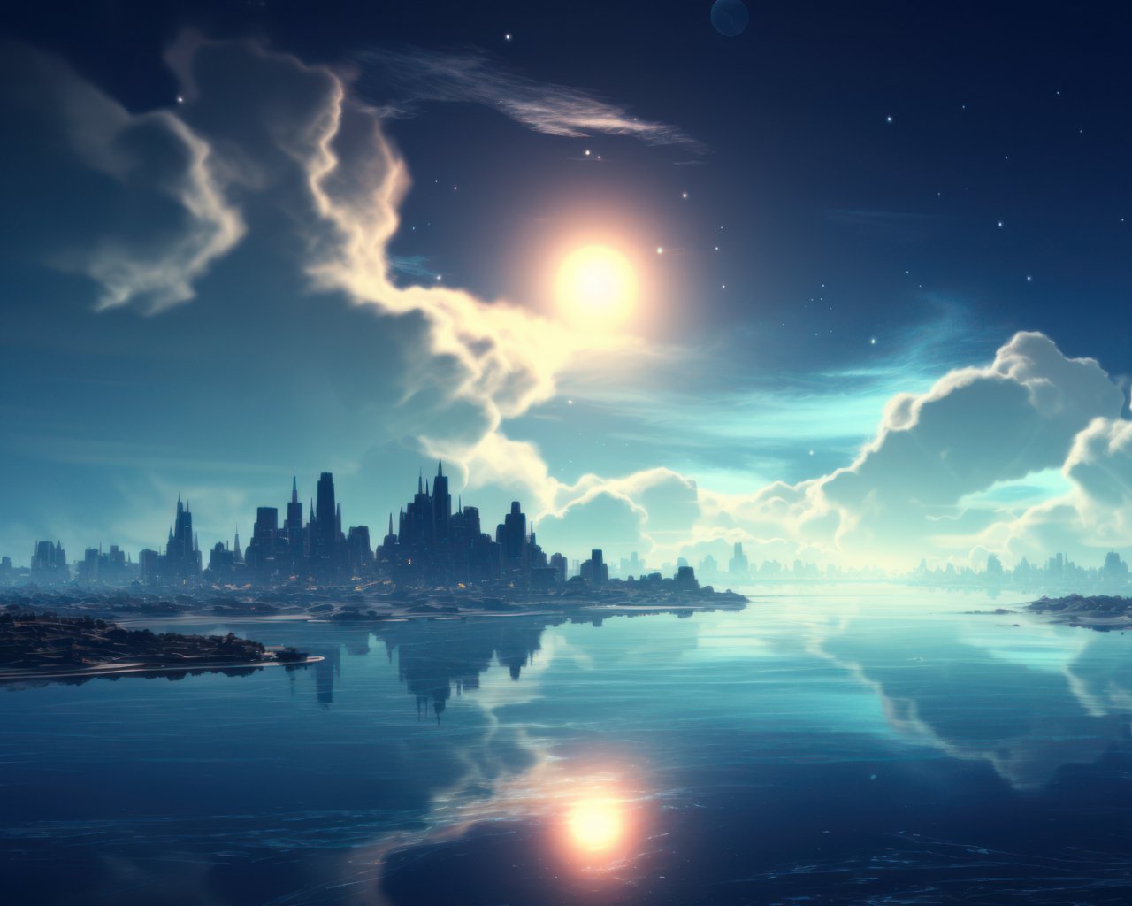 Обои: синий, ночь, пейзаж, город - 1280x1024