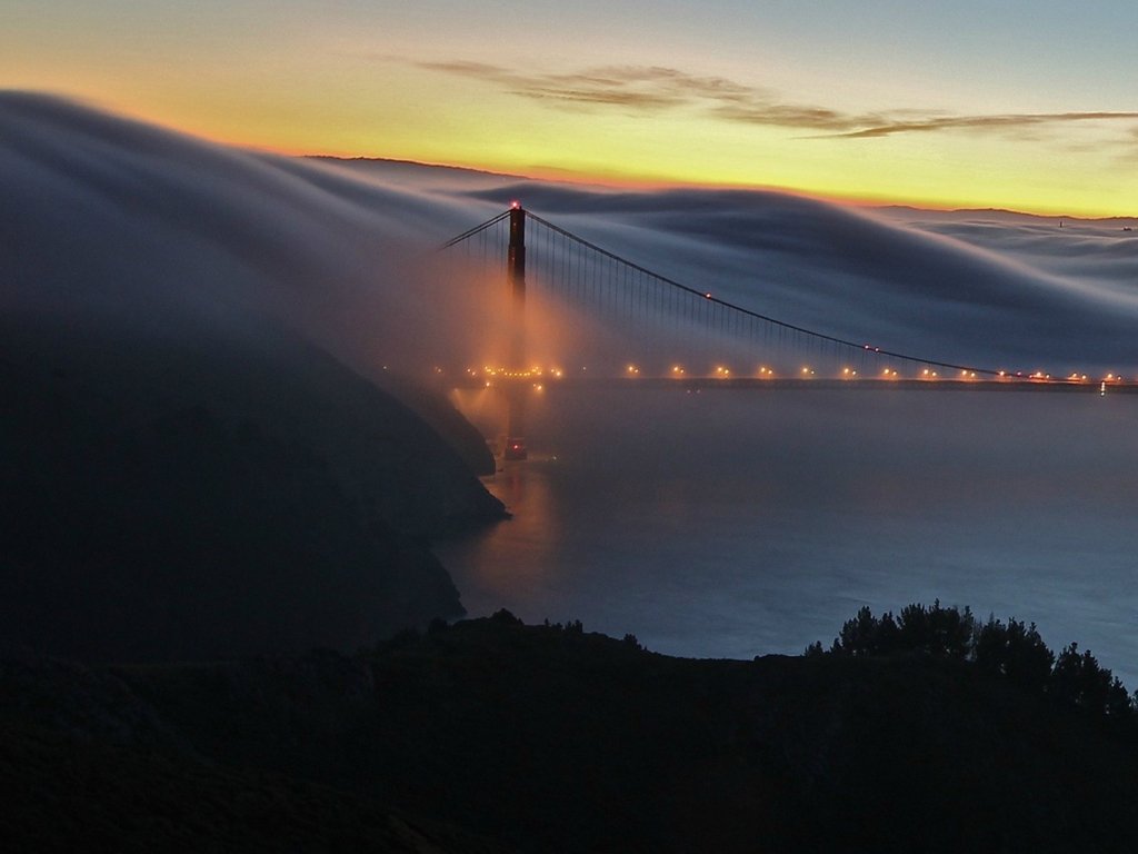 Обои: туман, Мост Золотые Ворота, Сан-Франциско - 1024x768