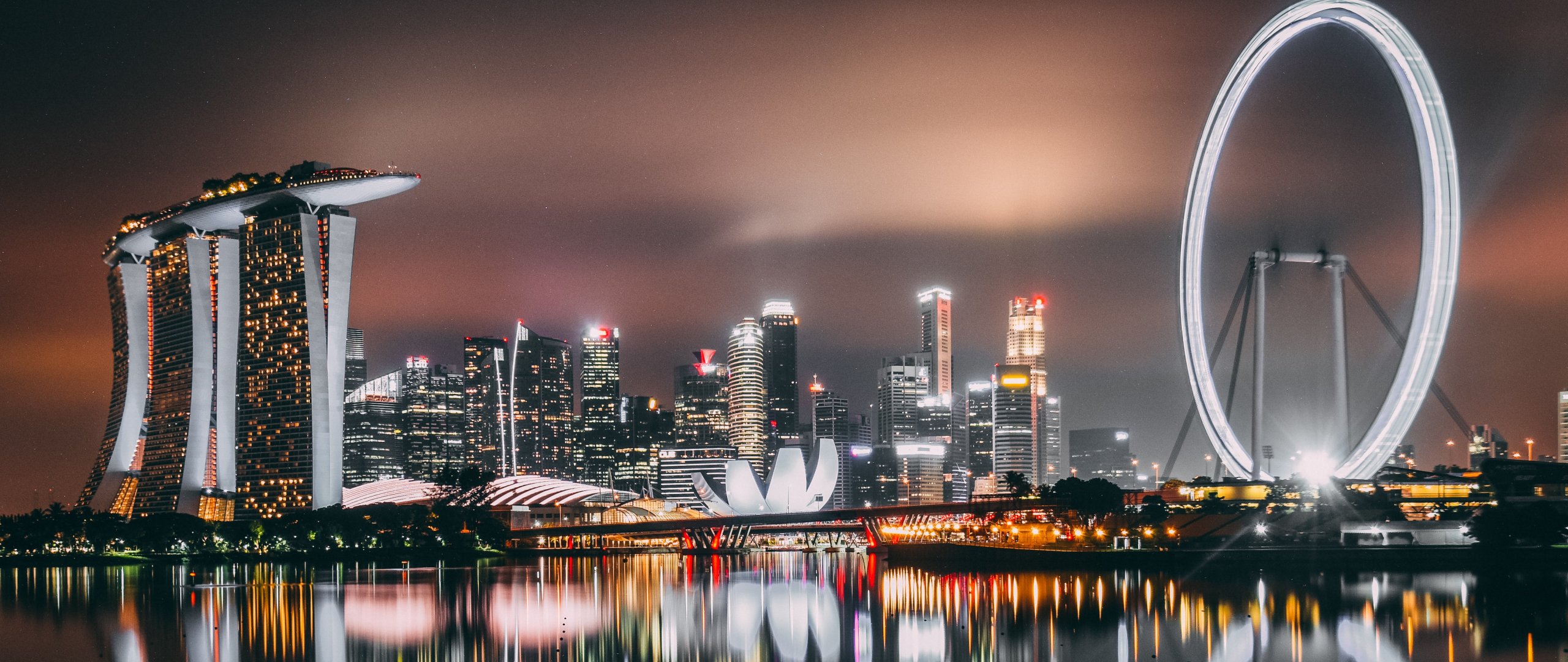 Обои: Marina Bay Sands, Сингапур, ночь - 2560x1080
