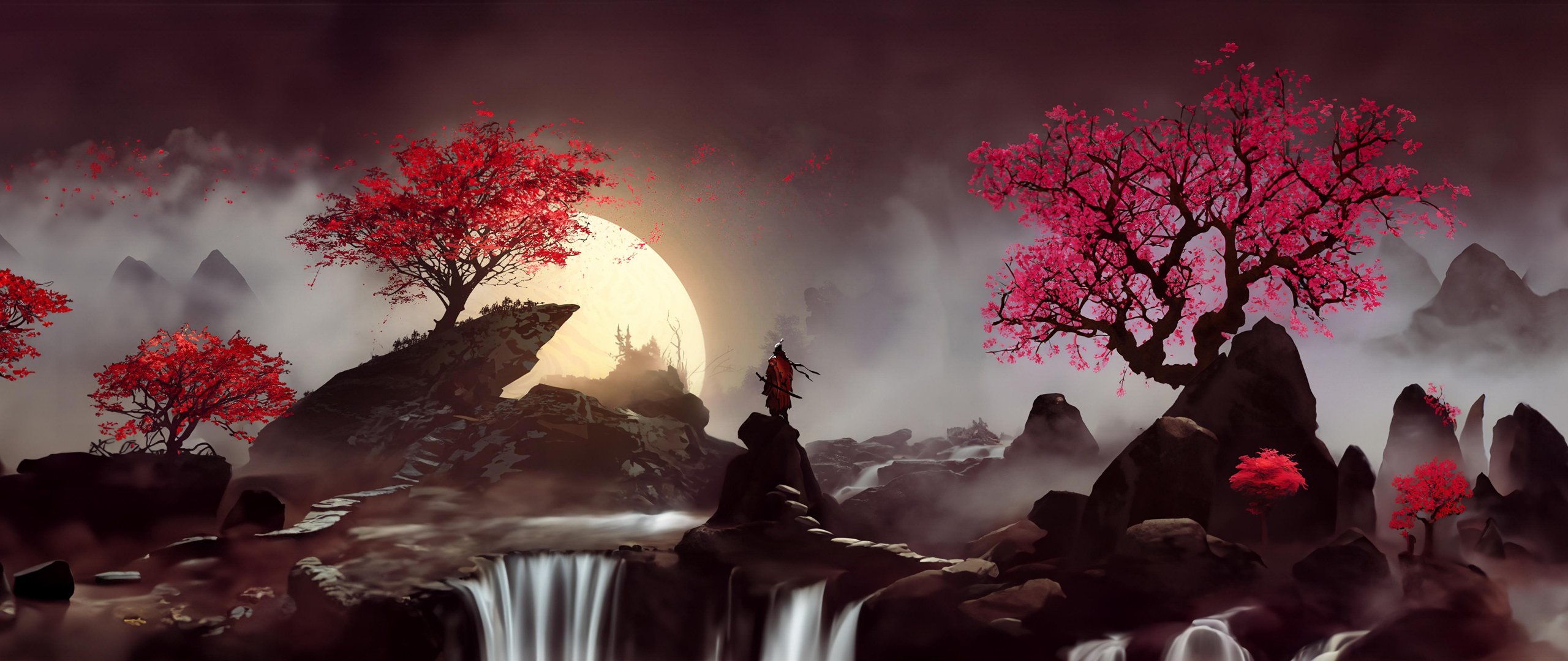 Обои: Япония, самурай, сакура - 2560x1080