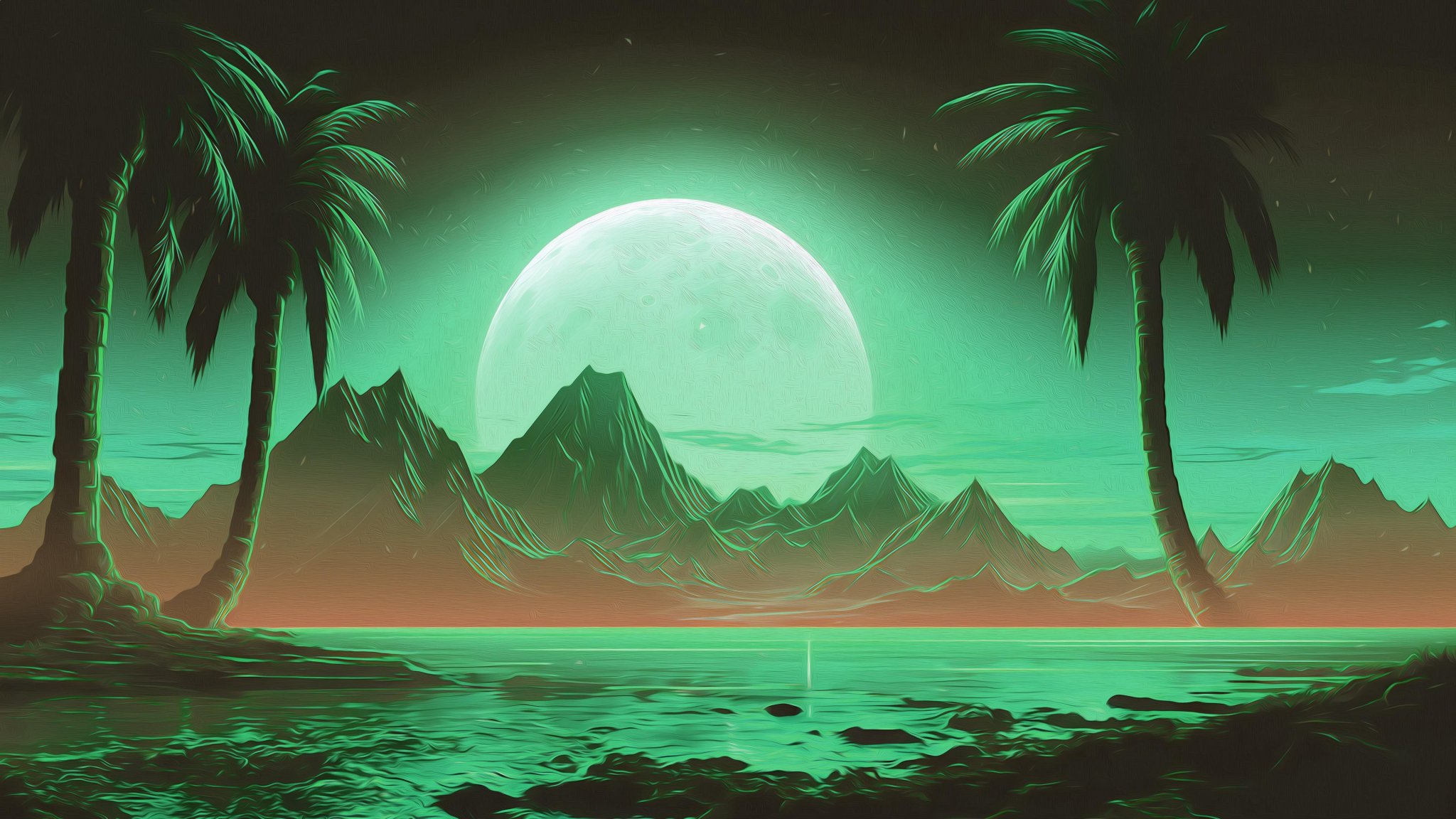 Обои: оазис, пейзаж, зеленый - 2048x1152