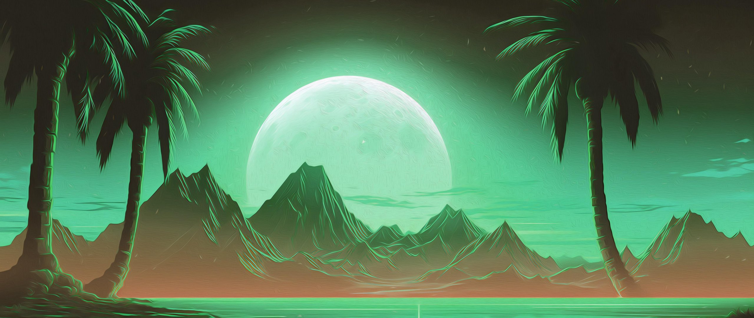 Обои: оазис, пейзаж, зеленый - 2560x1080