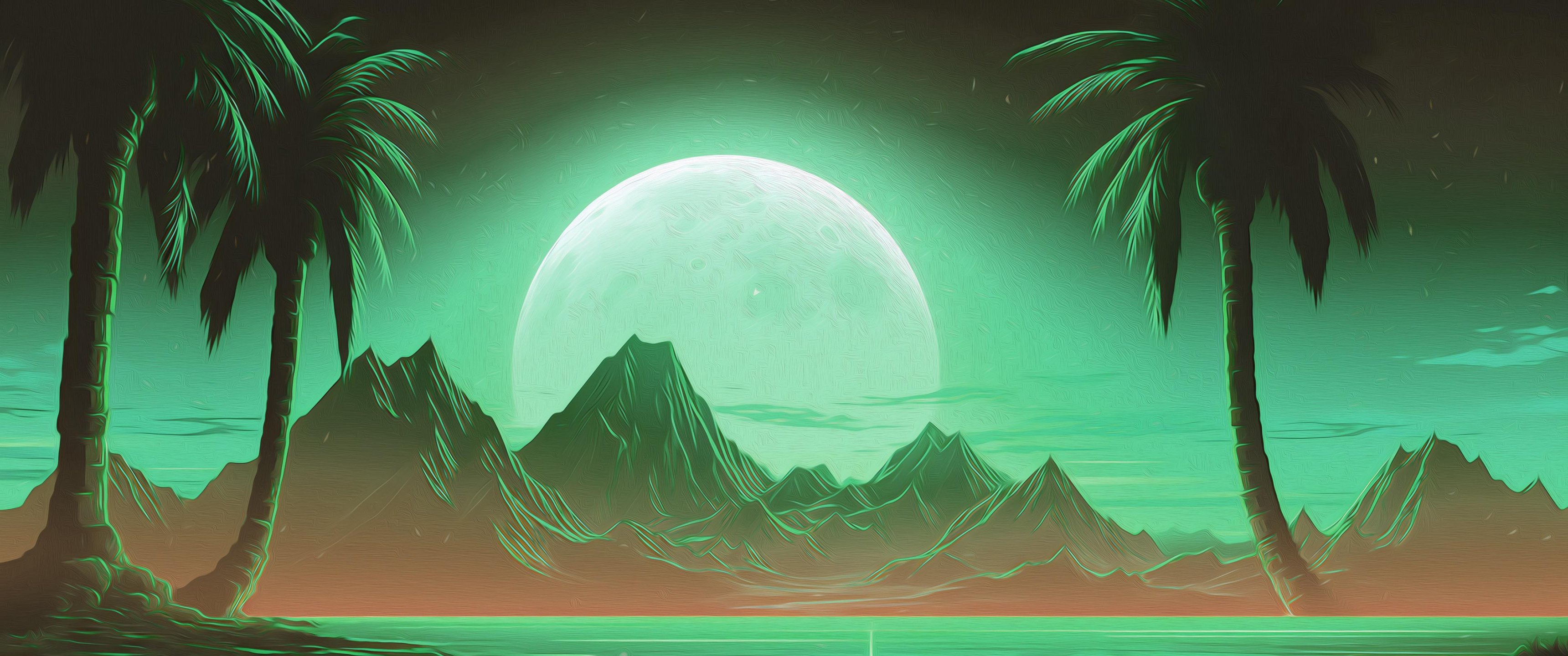 Обои: оазис, пейзаж, зеленый - 3440x1440