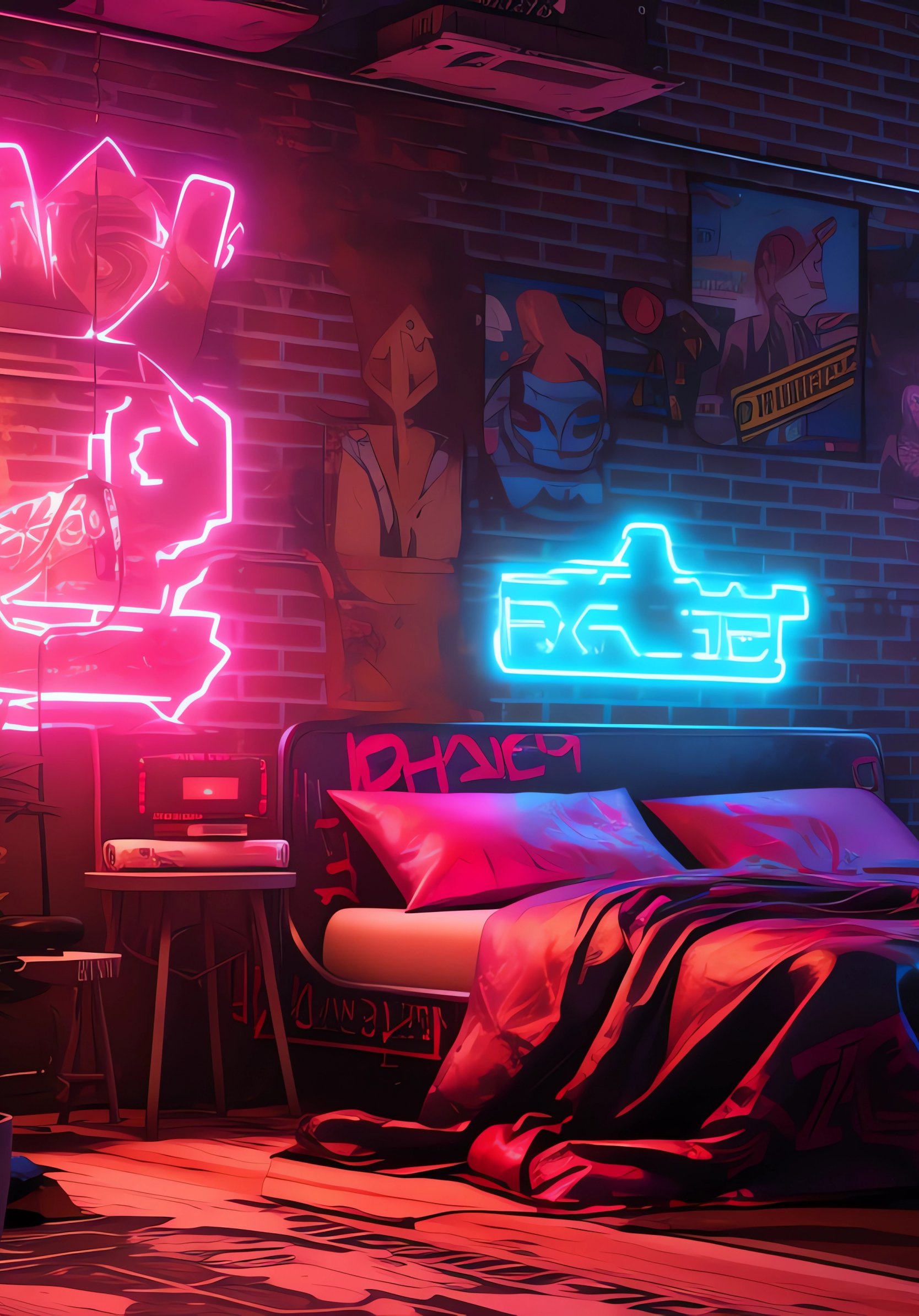 Обои: неон, постель, комната, киберпанк - 1668x2388