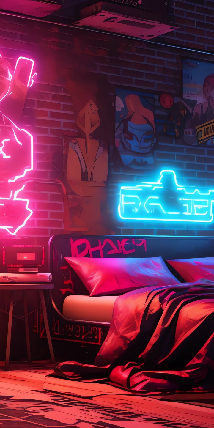Обои: неон, постель, комната, киберпанк - 720x1440