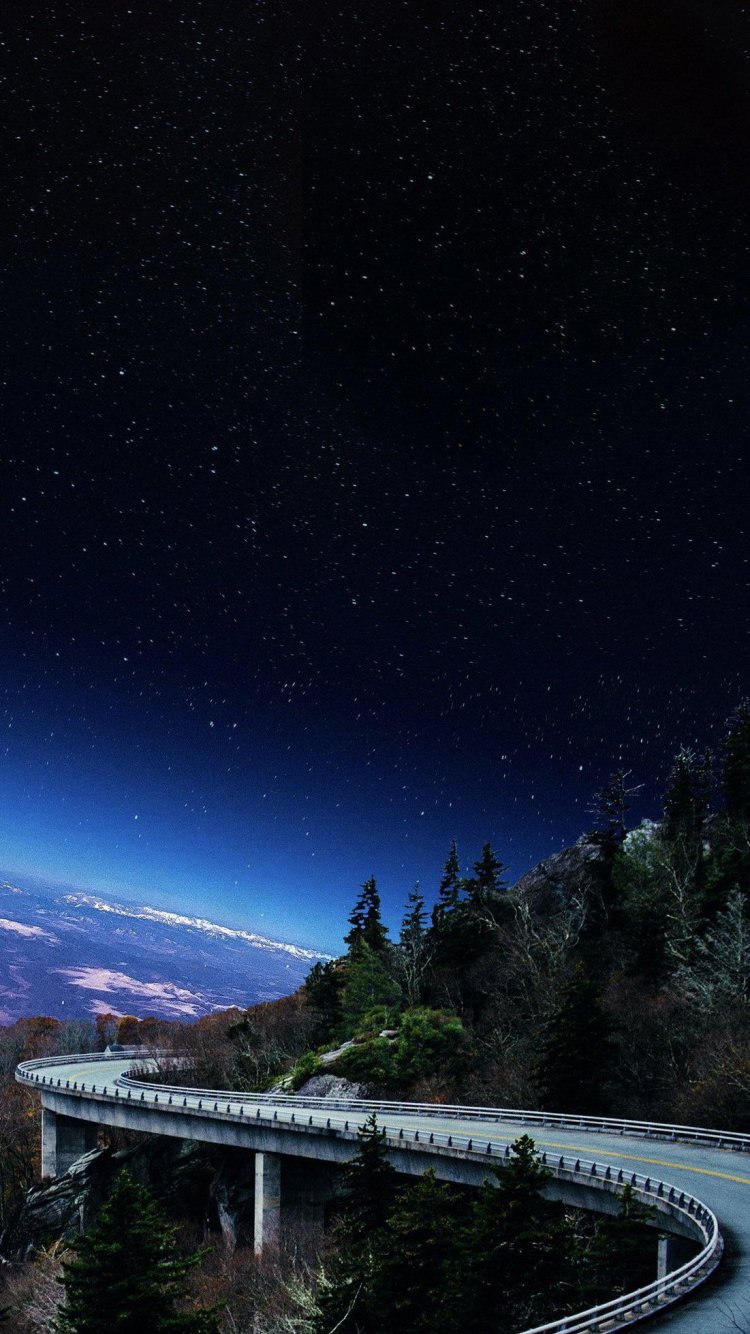 Обои: дорога, звездное небо, ночь - 750x1334