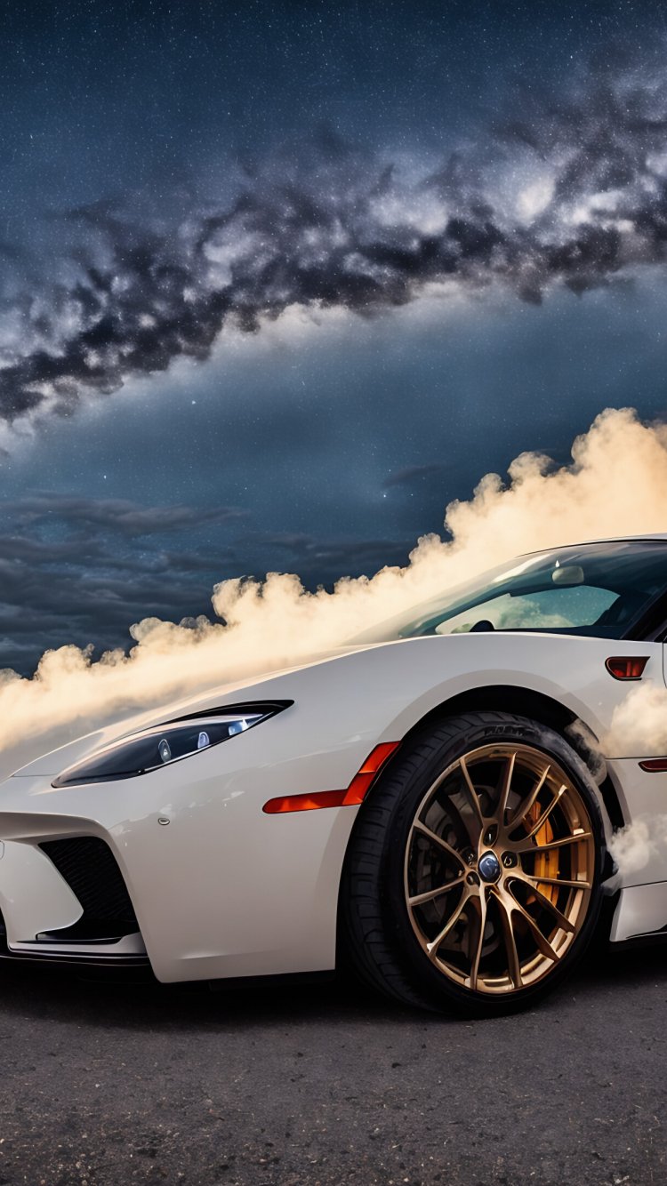 Обои: спорткар, дым из под колес - 750x1334