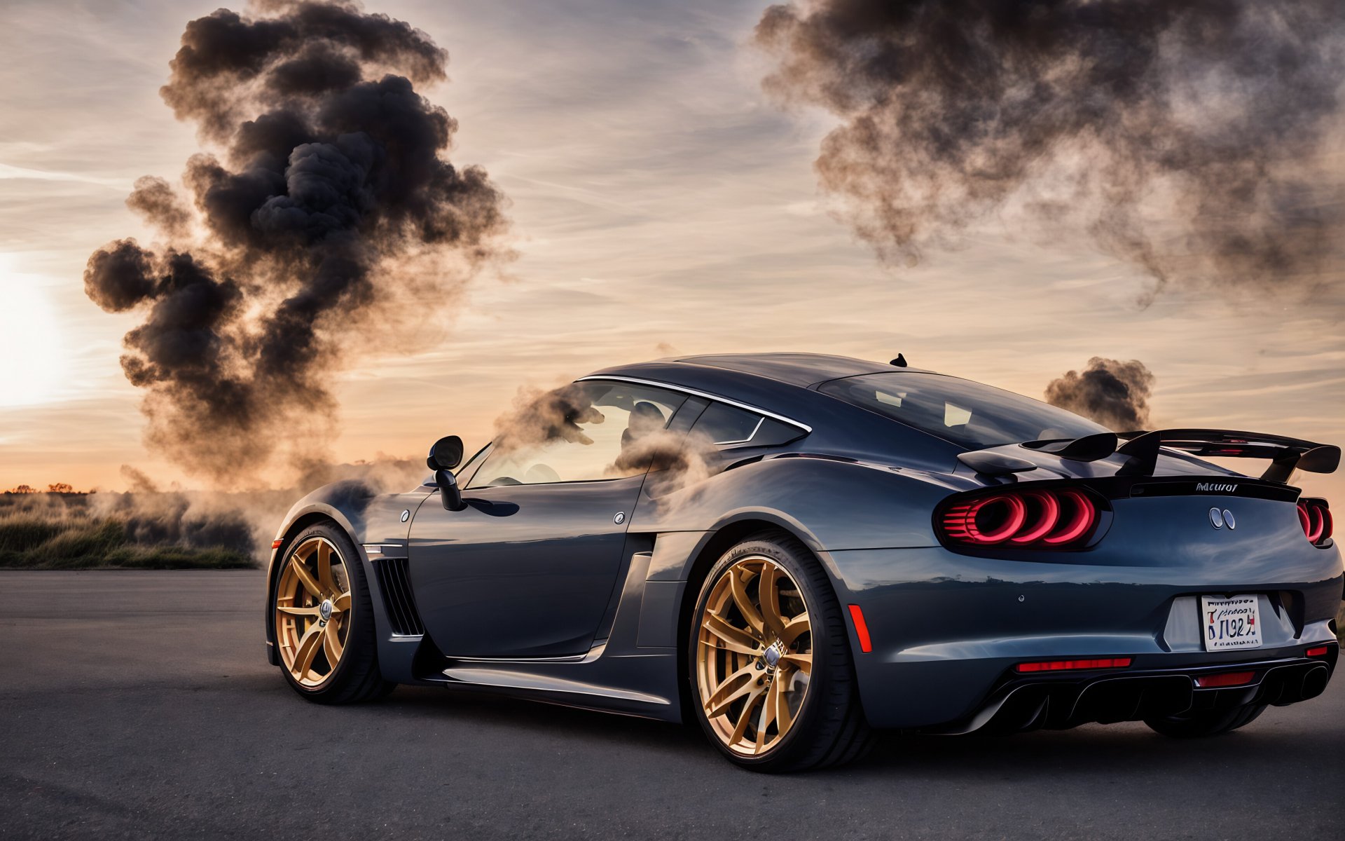 спорткар, дым из под колес