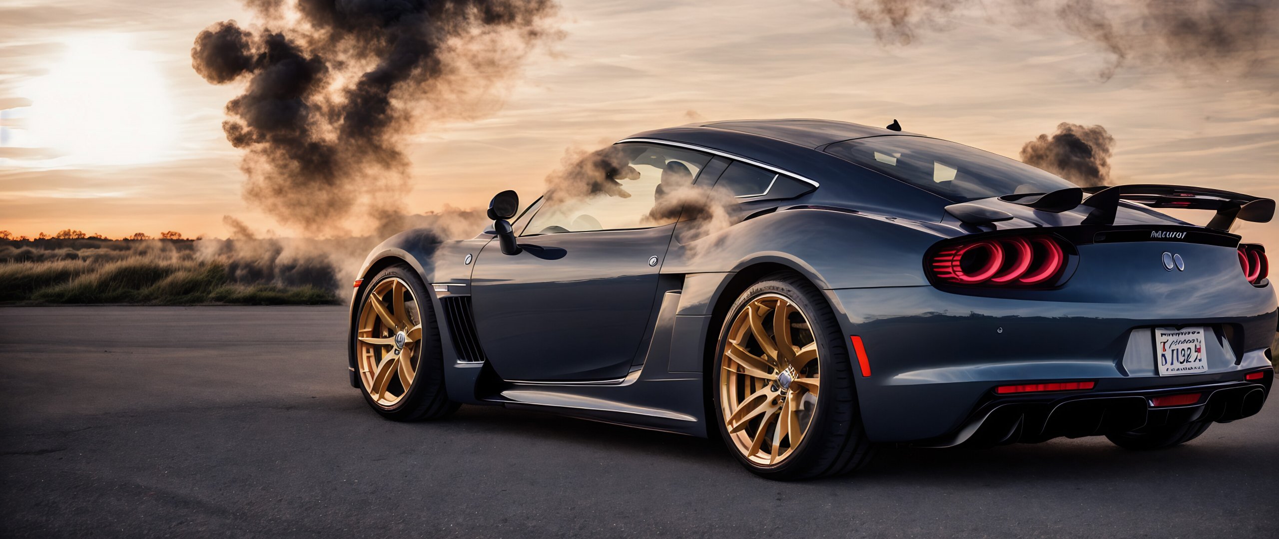спорткар, дым из под колес