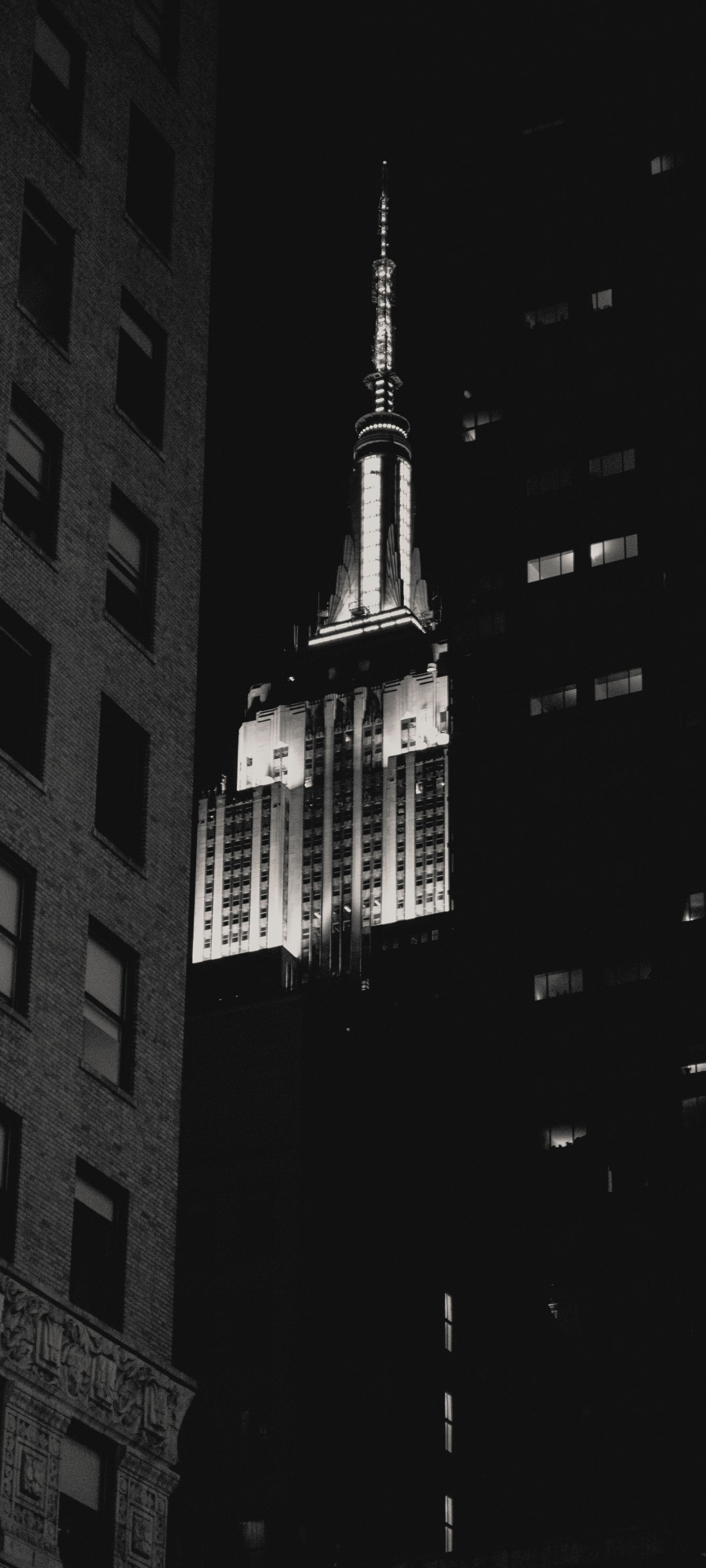 Обои: Эмпайр-стейт-билдинг, Нью-Йорк, черное и белое - 1440x3200