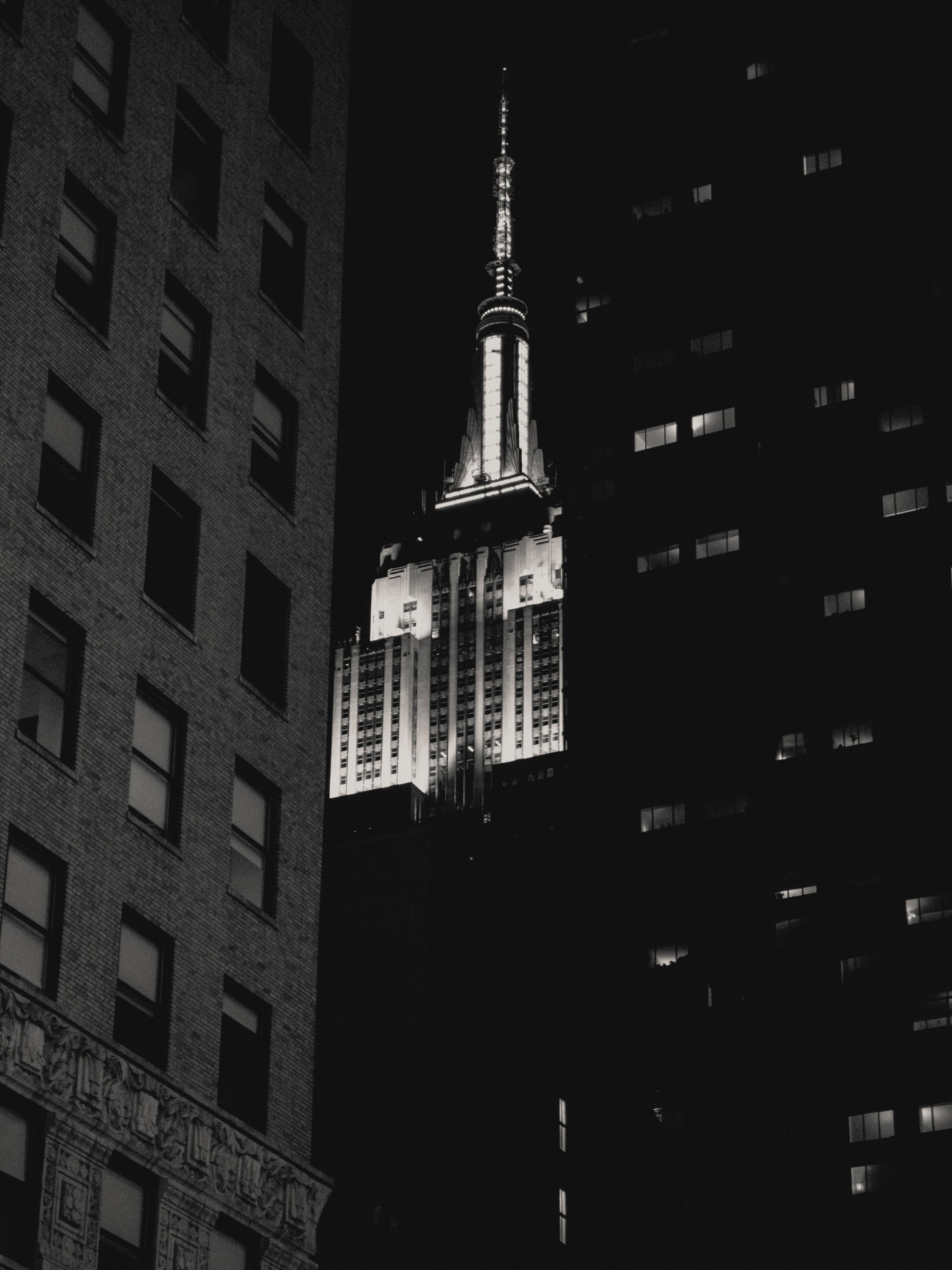 Обои: Эмпайр-стейт-билдинг, Нью-Йорк, черное и белое - 2048x2732