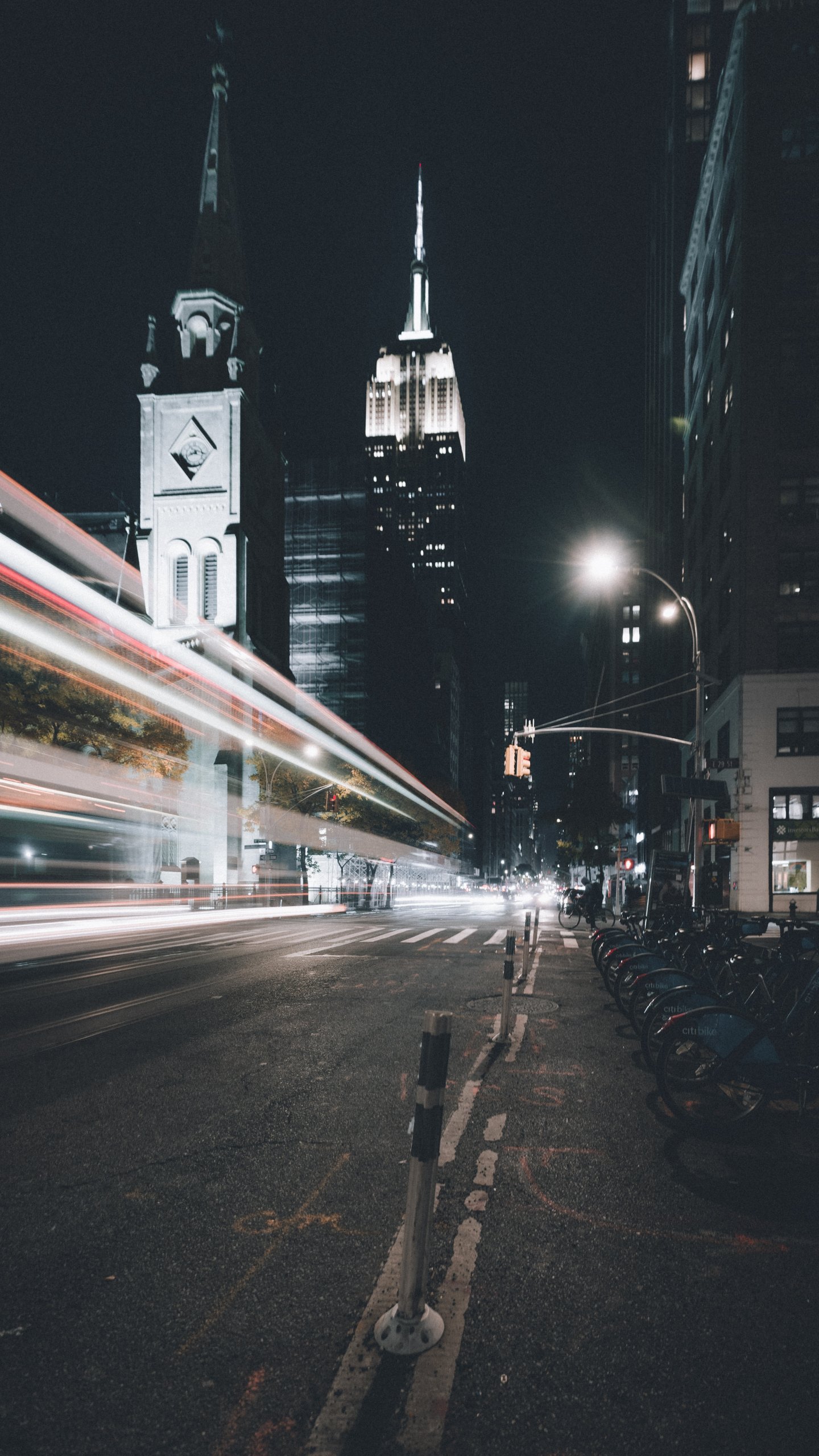 Обои: Эмпайр-стейт-билдинг, Нью-Йорк, ночной город - 1440x2560
