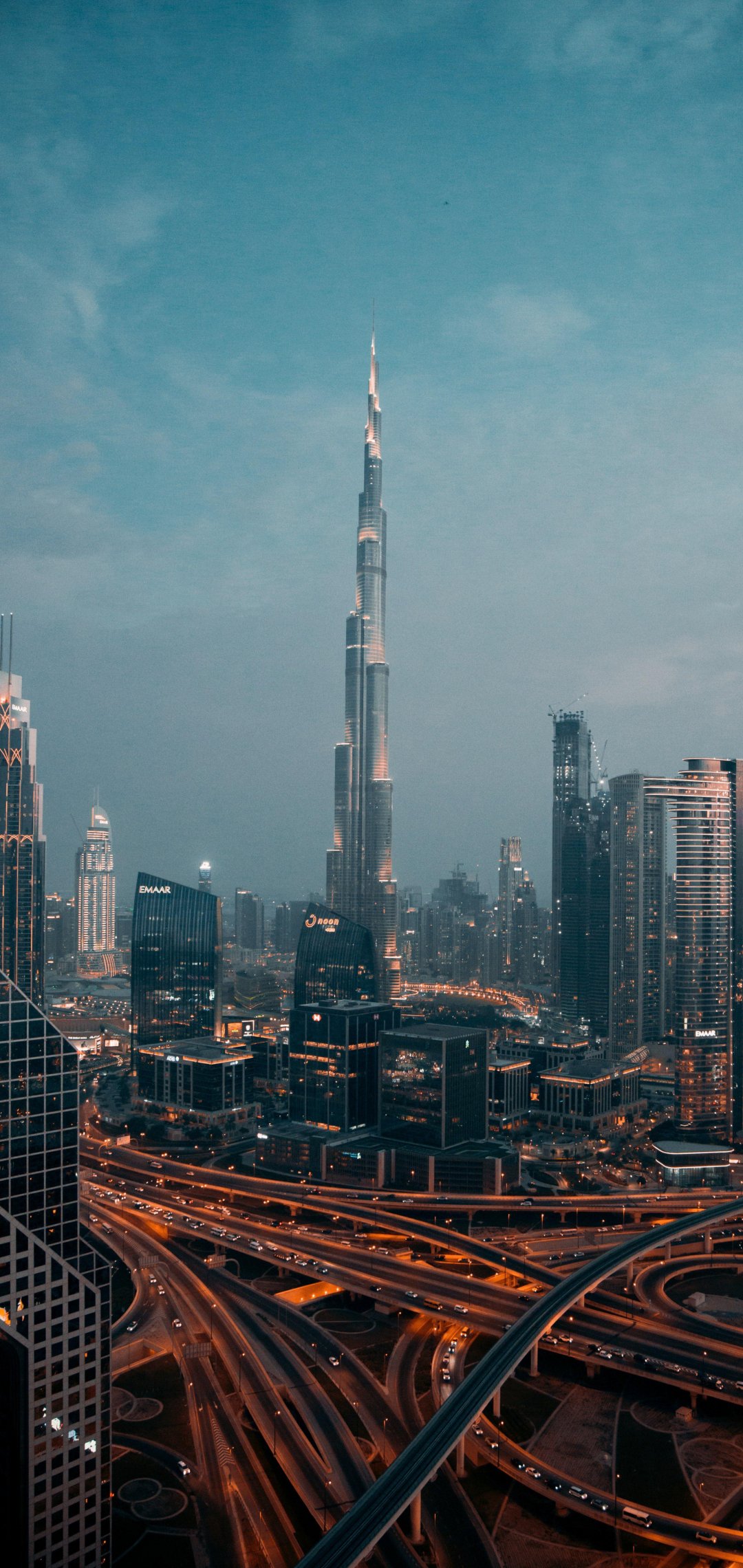 Обои: Бурдж-Халиф, Дубай, ночной город - 1080x2280