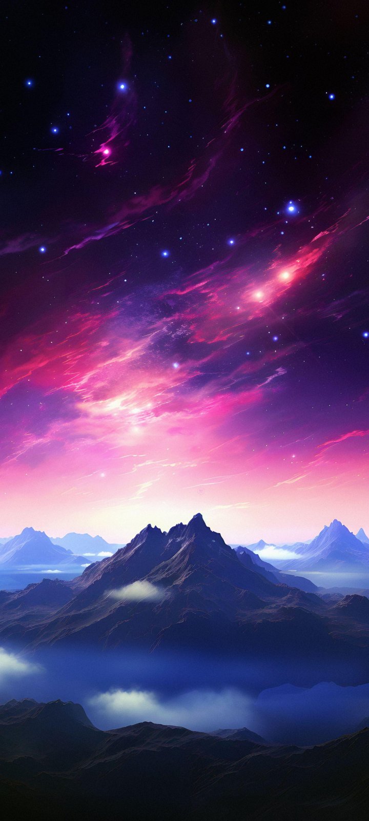Обои: гора, звездное небо, фиолетовый - 720x1600