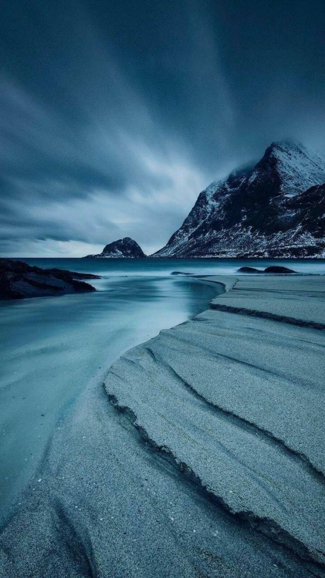 Обои: пейзаж, море, горы, синий - 640x1136