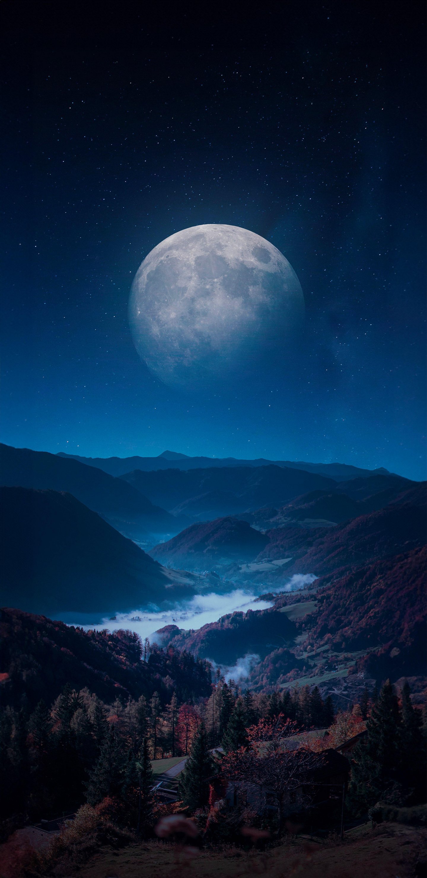 Обои: луна, синий, ночь, пейзаж - 1440x2960